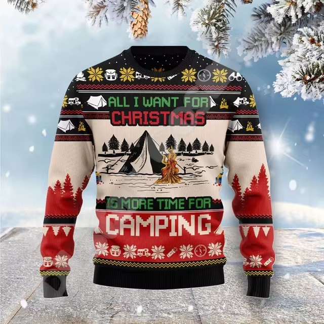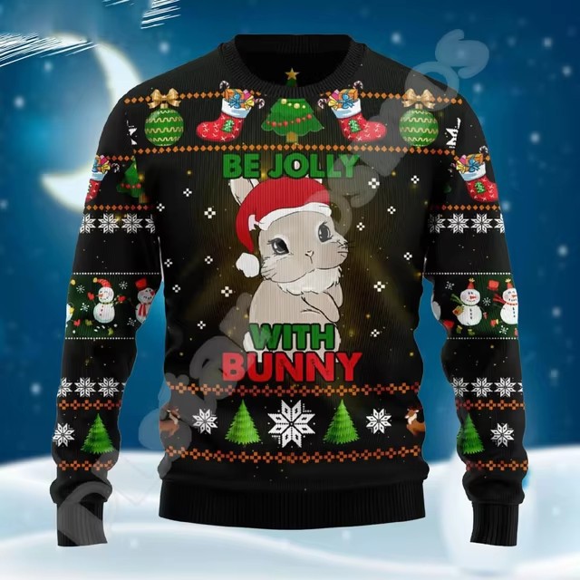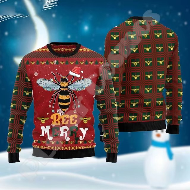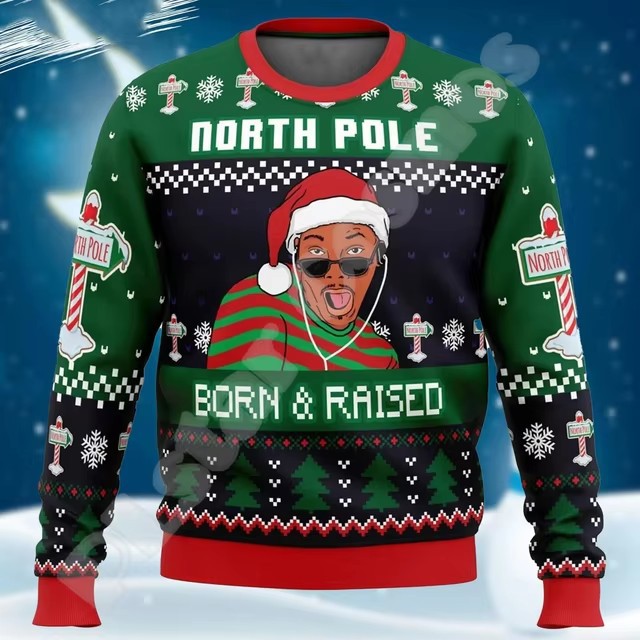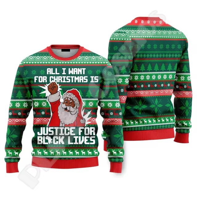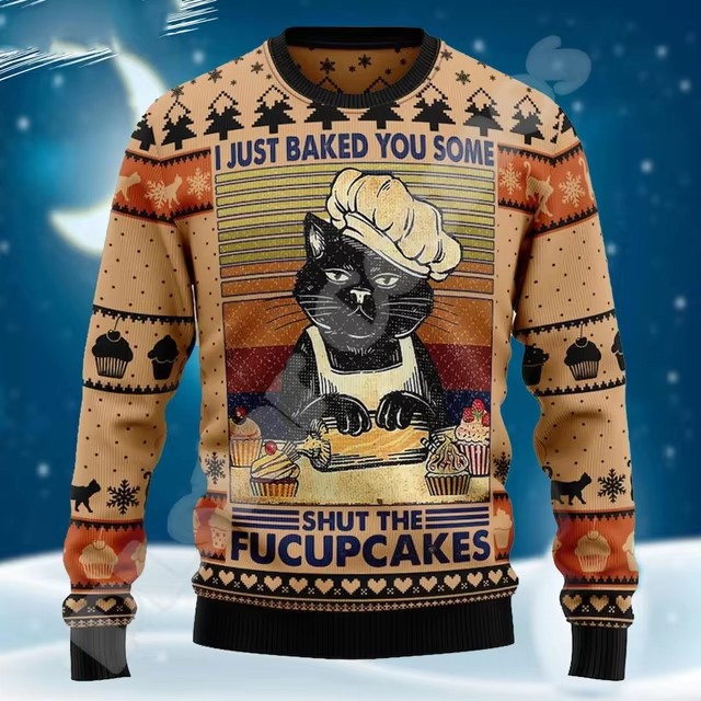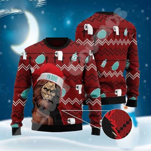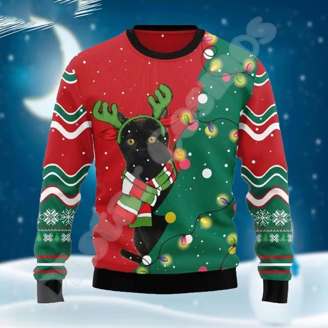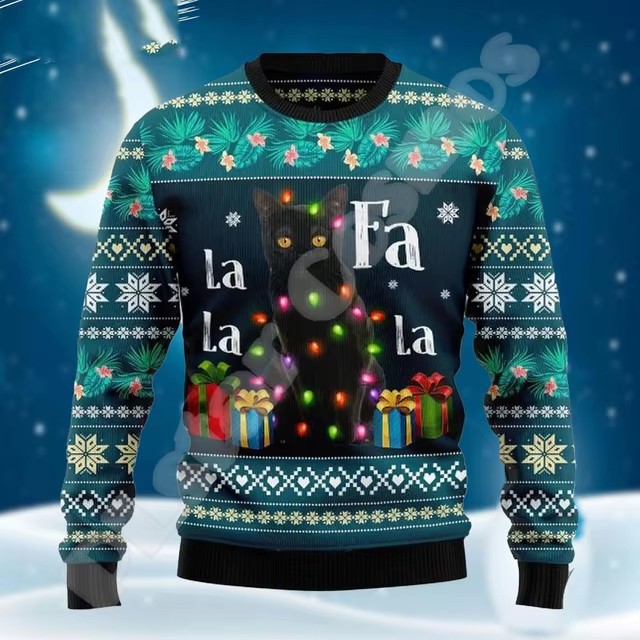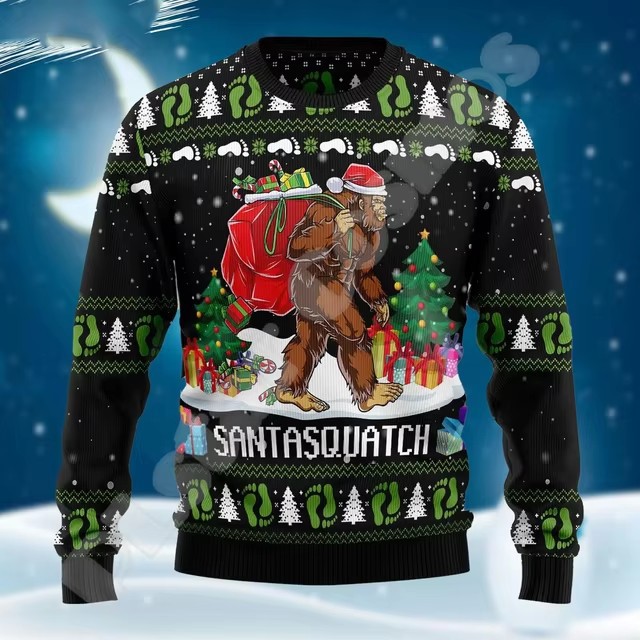 Christmas Chunky-knit Hoodie With Graffiti Tattoo And Vintage Print Unisex Harajuku-style Casual 3D Digital Design