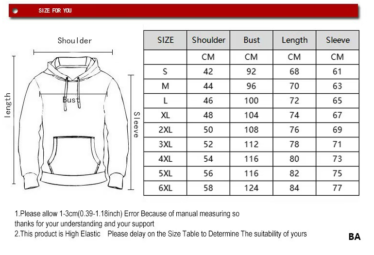 Sizes: S, M, L, XL, 2XL, 3XL, 4XL, 5XL